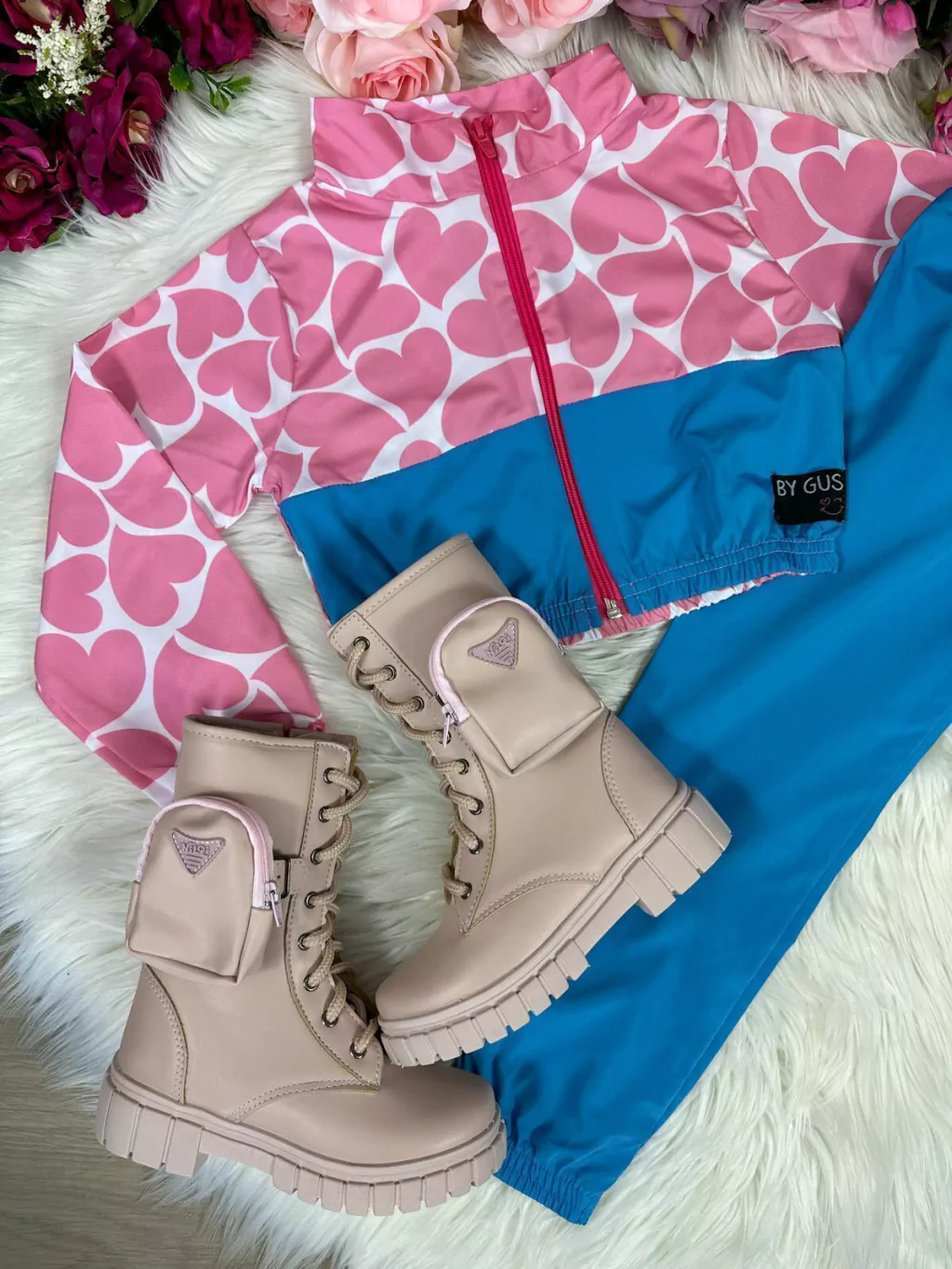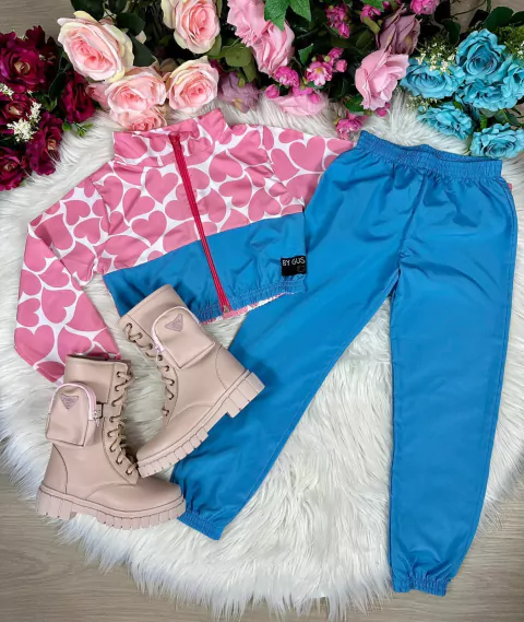 Conjunto de Inverno By Gus Corta Vento Calça e Blusa, Rosa Com Azul