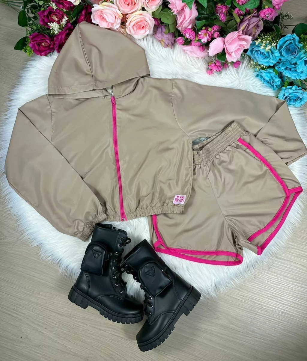 Conjunto By Gus Meninas Corta Vento na cor Caramelo